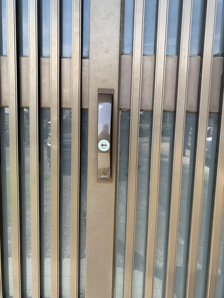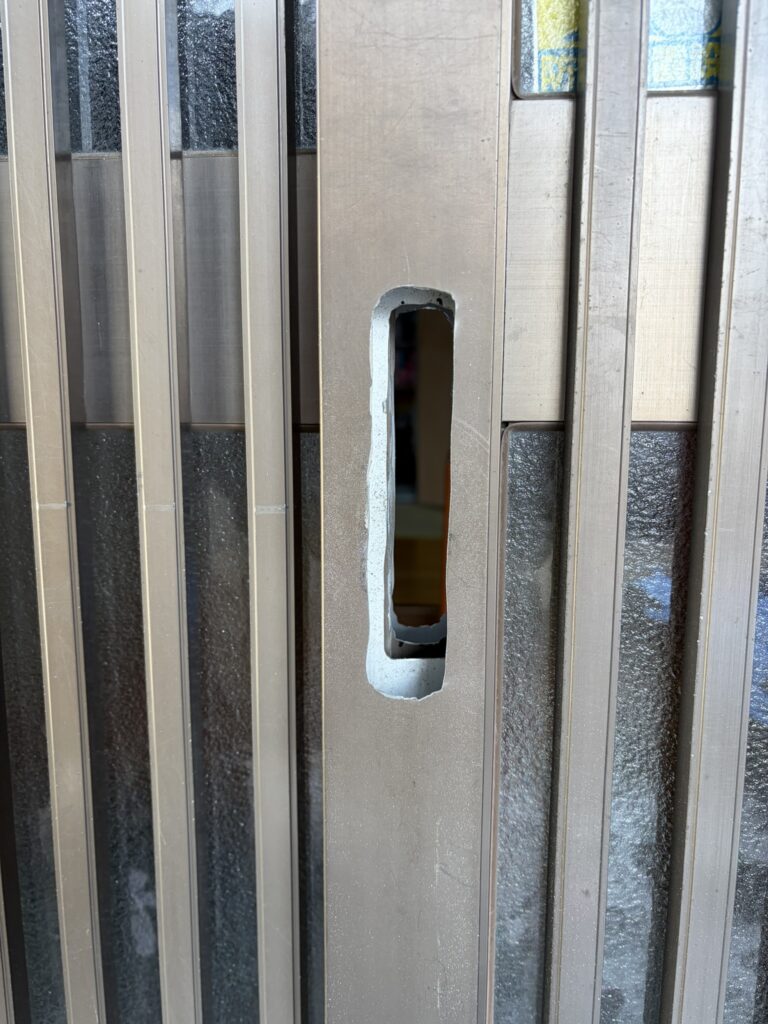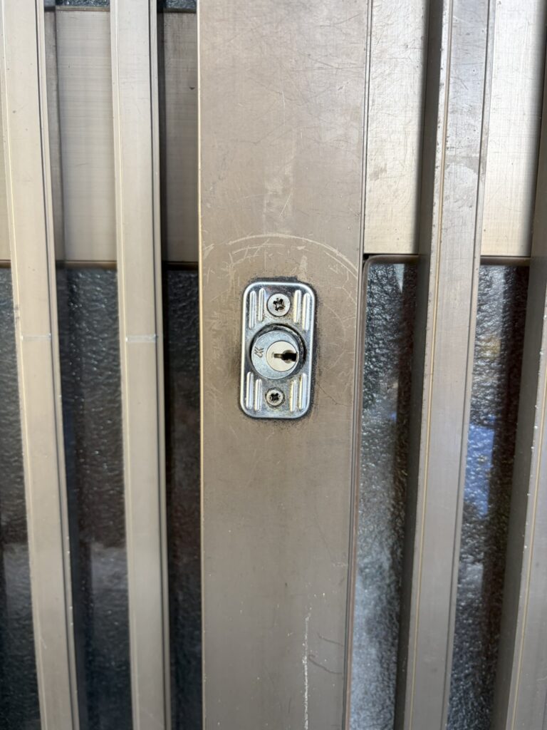 引き戸の鍵が古く、最新の鍵にしたいとのご要望で扉を加工してディンプルキーの鍵を取り付けいたしました。